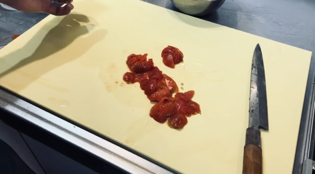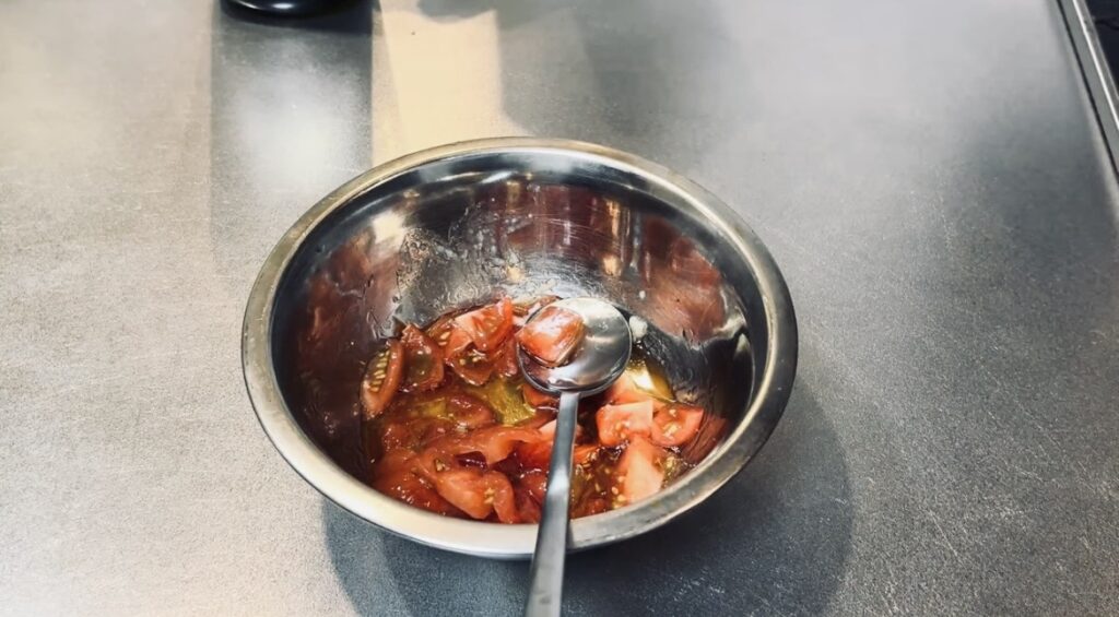 ミニトマトは皮を剥いておくことで味が馴染みやすくなる為、あらかじめ剥いておくとおすすめです。